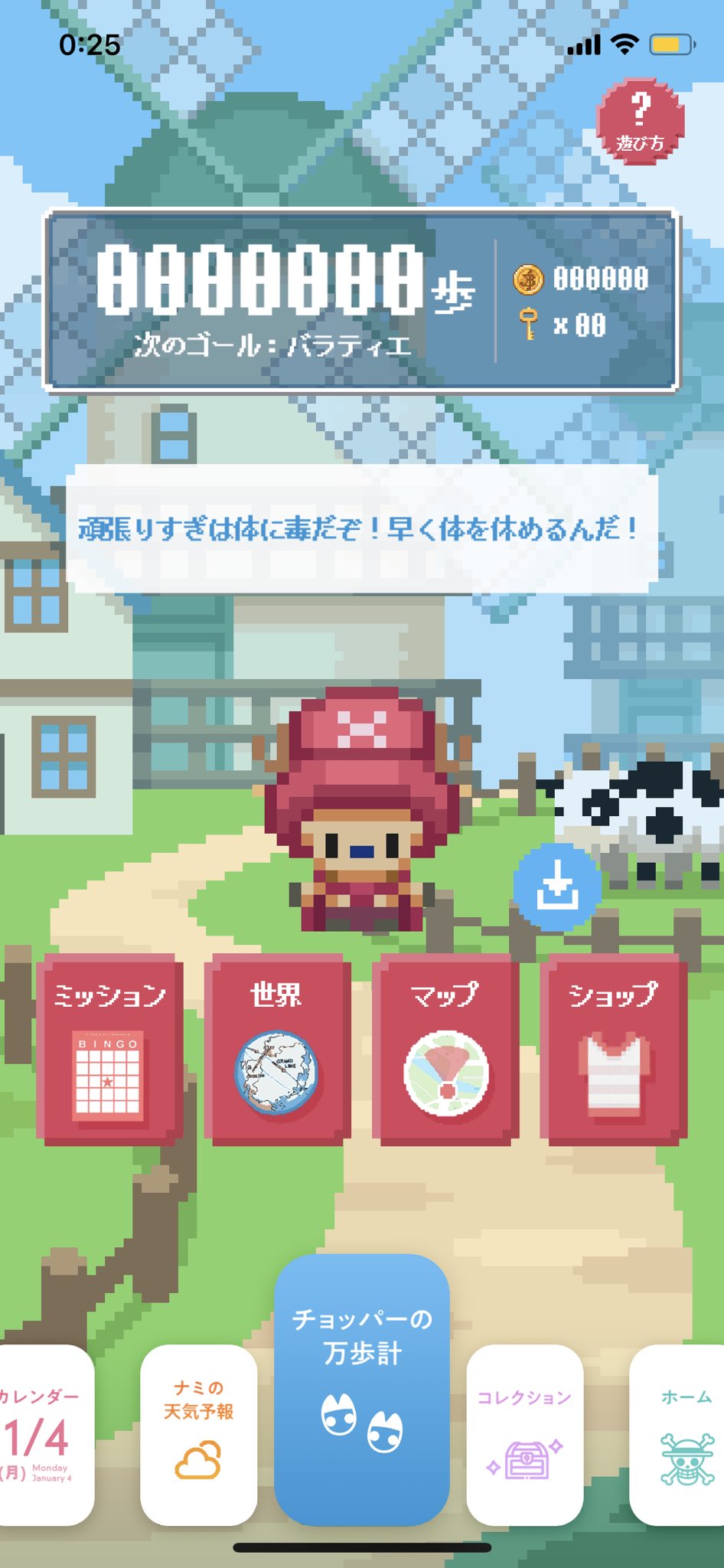 いつき בטוויטר 乗り遅れたんですが まいにちワンピース始めました チョッパーの万歩計結構貯まりやすいよね 出勤だけでこれだけ稼げるの良いなぁ スタンプも集めたいな まいにちワンピース